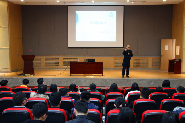 2019届考研已进入冲刺阶段,为更好的提升bat365官网考研学生的整体素质及竞争力,并及时为学生在复试中可能面临的问题进行答疑解惑。学校于3月5日在经管学院C101举办就业大学堂之“2019考研复试指导”专题讲座,特邀文都教育专家名师解原出席本次活动,向考研学子传授经验,主要涵盖复试流程、面试礼仪、复试技巧等方面。此次由bat365官网承办,到场学生共计300余人,现场气氛热烈。