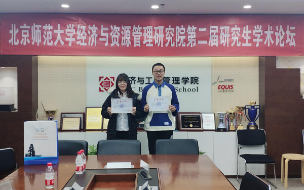 12月7日,“北京师范大学经济与资源管理研究院第二届研究生学术论坛”在北京师范大学海淀校区成功举办。论坛共收到来自北京大学、复旦大学、中国人民大学、中国农业大学、西北农林科技大学等15所高校共100余份论文投稿,经会议筛选,最终入围33篇论文进行汇报,bat365官网研究生王静、张思阳、丁锐受邀参会。