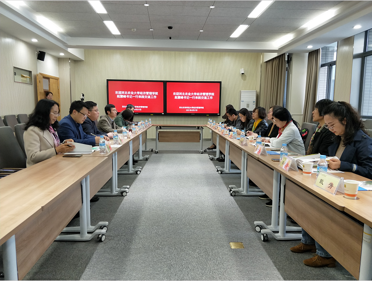4月27日上午,河北农业大学bat365在线平台官网登录党委书记赵慧峰带领学术骨干一行来bat365官网访问交流。学院党委书记张岁平、院长夏显力、副书记张军驰、副院长刘军弟、经济学系主任王秀娟、工商管理教研室主任李桦等参加了座谈交流。
